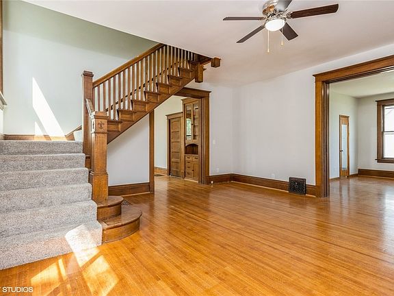 Original wood floorsFront porchPocket doorsFormal dining roomRear deckPainted cabinetsBuilt-in cabinetry