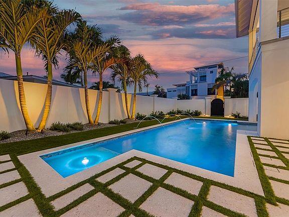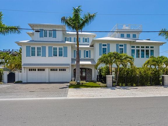 Discover unparalleled elegance in this stunning 3,400 sq. ft. very private residence 5 houses away from the Gulf on the north end of Anna Maria Island! You get to enjoy beach views from many rooms in the house without the beachfront price! Very well taken care of, never rented, and hurricane-rated elevated home that stands at one of the island’s highest elevation points. Built with a robust 25’ deep drilled piling foundation system, this architectural masterpiece combines cutting-edge smart home technology with timeless luxury. Five generously sized bedrooms, each with en-suite full bathrooms, plus two half baths (one conveniently located off the pool area). The master suite boasts a marble-clad bathroom with a luxurious shower, floors, and countertops, while other bathrooms feature sleek quartz countertops. The chef’s kitchen is equipped with Sub-Zero and Wolf appliances, including a 36” refrigerator, 30” freezer, wine refrigerator, under-counter refrigerator, and pantry refrigerator/freezer drawers. The 48” dual-fuel gas/electric stove with four burners and a 24” griddle, paired with a convection/steam oven, ensures culinary excellence. Custom Campbell Cabinetry, dolomite marble countertops with a leathered finish, and an instant hot/cold filtered water system elevate the experience. Control your environment with ease using the Blue Sound eight-zone interior/exterior audio system, Leviton smart lighting, Honeywell alarm system, IC Realtime 9-camera system, and remote keypad door locks and garage door openers with battery backup. Motorized Hunter Douglas roller shades grace the living, dining, and kitchen areas, while a Leon Speaker Framed Art Concealed Television and Sound System adds a touch of modern artistry. Engineered French Oak hardwood flooring flows throughout, complemented by tongue-and-groove wood ceilings, shiplap wall cladding, and natural stone gas fireplaces in the living room and pool area. Hardiboard cement board siding, Azek trim, and a custom six-foot stucco perimeter wall with powder-coated aluminum privacy gates ensure durability and privacy. Talk about a Resort-Style Outdoor Oasis! Dive into the 14’ x 32’ custom saltwater pool for complete relaxation. There is a gas spa to heat up quickly and an electric pool heater. The LED lighting and water features at night is such a fun touch! Completed with turf for very low maintenance clean up. Shower off in the custom outdoor enclosed shower after beaching it then head up to the spacious roof top deck that has panoramic views of the Gulf and even the skyway bridge!! Elevator, climate controlled garage, sunroom are some more bonuses! This home truly has it all! Such a rare opportunity to own a private, high-elevation sanctuary on Anna Maria Island, blending state-of-the-art technology with coastal charm. This luxurious, comfortable, storm-resistant home is ready for you to move right in!