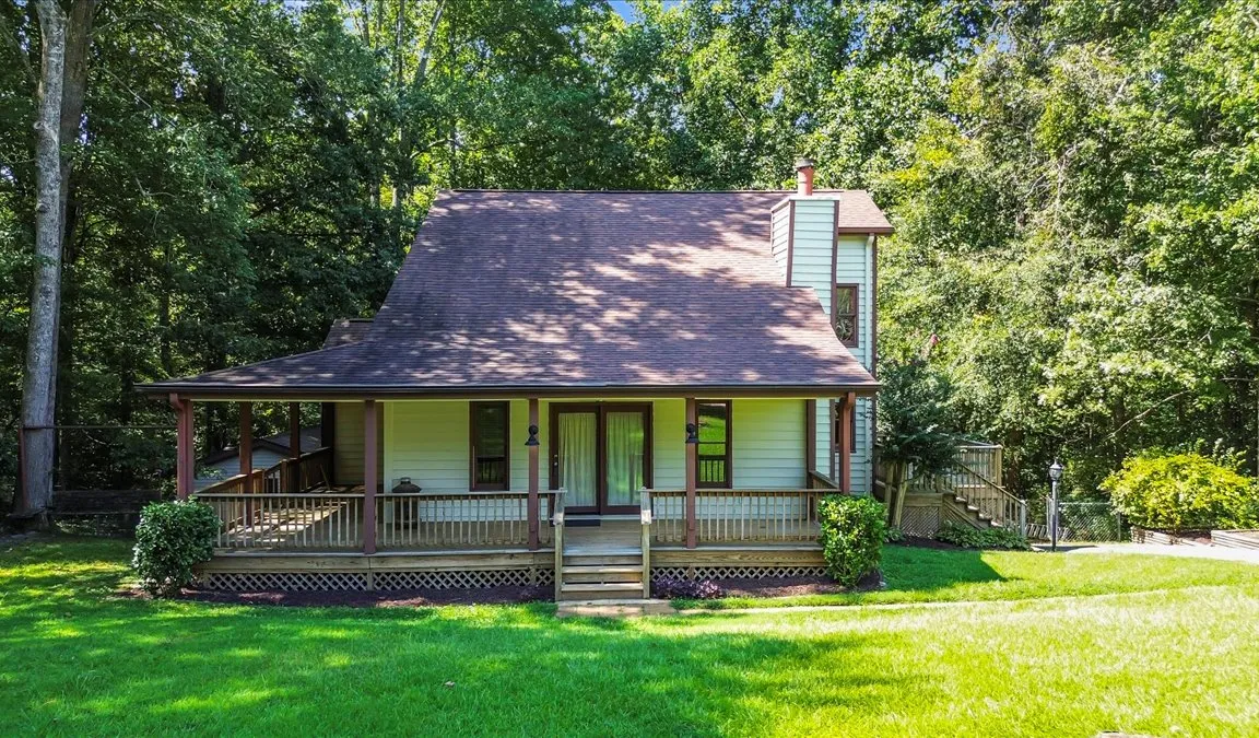 Impressive stone fireplaceWide wrap-around porchSpacious lotUnique side staircaseLarge established blueberry bushSoaring cathedral ceilings