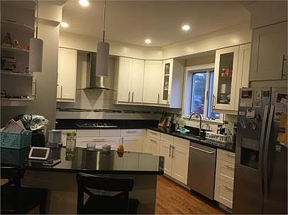 Available Jan 1. This bright and spacious 3 bedroom, 2 1/2 bath home features a modern open floor plan with brilliant chef's kitchen with access to the outdoors, granite counters, breakfast bar and hardwood floors throughout. The large master suite includes a stunning en-suite bath, generous walk-in closet, and private deck overlooking the fenced backyard. There are two additional family bedrooms with generous closets and a bright office area. Additional amenities include central air, custom window treatments, washer and dryer, and a security system. This lovely home is in the perfect Newton Centre location, with close proximity to schools, shops, public transportation and easy access to all major highways.