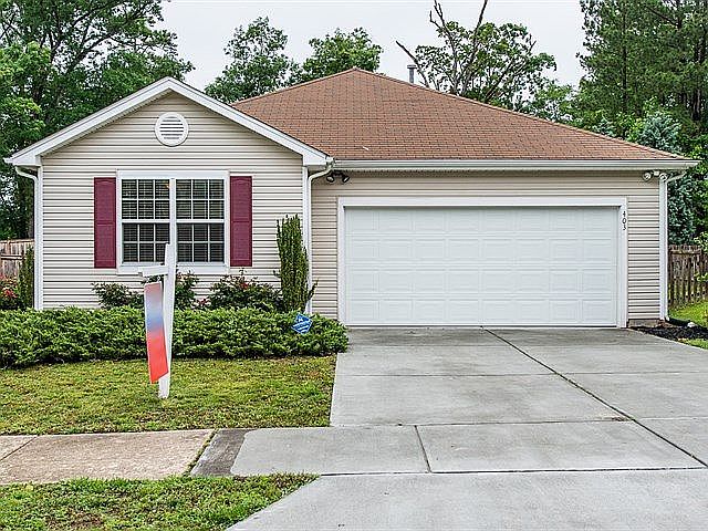 HIGHLY sought after RANCH w/4 bedrooms + TWO car garage. A rare find in this area! Engineered hardwoods t/o main areas, new carpet, & fresh paint! Very open flr plan! Gourmet kit w/42" cabs, working island, pantry! Dining area ovrlks backyd + fam rm w/gas log fp - all flow together! Oversized Mstr suite w/w-i closet, soaking tub! 3 additional bdrms offer ideal flex space! Fenced yard! Comm Pool. Easy access to RTP, Brier Creek, 70! Low maintenance exterior!