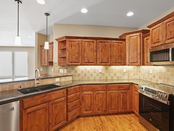 Welcome home! Don't miss this beautifully maintained 3 bed, 2 bath 1695 sq ft, zero step rancher home situated in a gated, 55+ community. This home showcases a spacious kitchen with granite counters, SS appliances, custom cabinets, wet bar and a walk-in pantry. The great room features hardwood floors, and gas fireplace for cozy evenings! The primary bedroom ensuite includes a walk-in closet, double sinks in the bathroom and a walk-in shower.