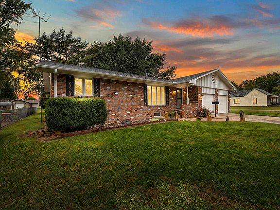 Beautiful brick home on the edge of Lyons with tons of updates!!! The meticulously manicured yard and quaint porch draw you right into your new home in the quiet town of Lyons, KS! As you walk through the front door the large living room space with engineered hardwood floors, new recessed lighting and custom built banister with shelving immediately create a welcoming atmosphere! The gorgeous flooring lead right to the wood burning fireplace and open concept in the dining room inviting all to gather in the updated space! A completely remodeled kitchen with manufactured stone countertops, new appliances and breakfast bar allow for gathering around the heart of the home! Off the kitchen is the separate main floor laundry room and access to the attached oversized, insulated and climate controlled two car garage with workshop area. Down the hall the two SPACIOUS bedrooms have plenty of storage and beautiful floors! Also in the hall is a full bathroom with extra storage. Downstairs the massive basement living room offers even more space to play or hang out! The bonus room makes for a great office, playroom or hobby room! A newly updated full bathroom is also featured in the basement. Through the back sliding door off the dining room the covered patio space and continued manicured landscaping create an outdoor oasis! The large corner lot and alley access make this backyard functional and beautiful!!! Stunning updates, quiet location, convenient layout and so much more!