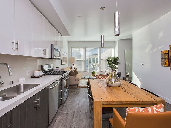 This large two-level 3 bedroom & 2 bathroom townhome features 3 large bedrooms that can easily fit an entire office or Den. The home is well lit and has beautiful modern luxury tile vinyl floors, high ceilings, quadruple-pane windows, air conditioning and heating; a large roof deck with views of the Point Richmond; and a full-size washer and dryer in the unit. The kitchen features a quartz countertop made out of Caesarstone and stainless steel kitchen appliances. The large bathroom contains beautiful high-end finishes and a tub.