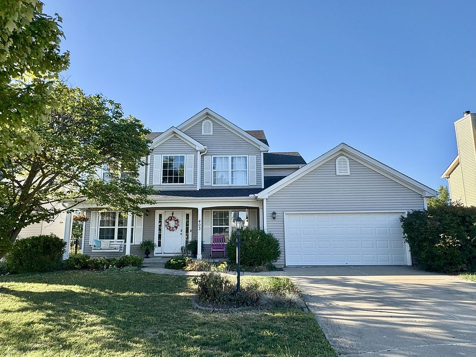 This Prairie Fields home is ready to impress and sits 1/2 a block from the Carrie Busey Elementary School! Great curb appeal matches with a functional floor plan to create your perfect home. The main level includes plenty of space and ability to spread out with a dedicated office/living room, a dining room and large family room with fireplace. You'll appreciate the added trim work not found in similar properties. The kitchen features tile floors with loads of cabinets and plenty of counter space. A slider door off the breakfast area gives easy access to an extra deep fenced lot. This lot is 159' deep! Take a look at an aerial view to see how much more yard space you get compared to other lots in the neighborhood and to spot the multiple walking paths. Upstairs you'll find a large master bedroom suite with vaulted ceilings and a spacious bath. Bedrooms 2, 3 and 4 are comfortably sized with great closet space. The finished basement is great with a large rec room/family room, full bathroom and a possible 5th bedroom next to the staircase. Roof replaced approximately 5 years ago!
