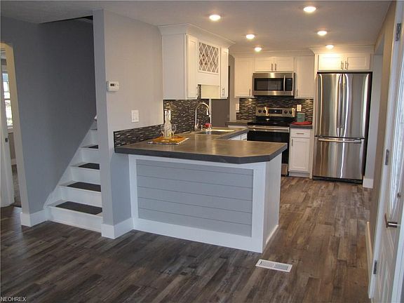 Located in Rittman this home is close to shopping, schools and parks. All new eat-in kitchen with fresh white cabinets, built-in wine rack, glass backsplash, concrete countertops and stainless-steel appliances. Gorgeous neutral gray tone flooring throughout the home flows with new woodgrain laminate, carpet and refinished hardwood floor upstairs. A new and A/C unit has been installed for your use this summer. The inside of the home is not the only thing that has been updated! Don't miss the outside of this charming home. Landscaping & outdoor living space has been brought back to life with new design, plants, regrading, natural stone retention wall and concrete patio. Call today for a private showing.