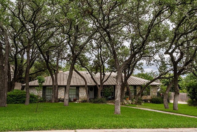 Beautifully updated 3/2 in desirable area close to schools & parks. Large tree-covered lot, standing seam metal roof & multiple patios for outdoor entertaining. Formal living has FP & is open to kitchen/bfast area. Gorgeous kitchen w/Carrara marble counters, custom cabinets,& gas range. Bathrooms recently completely remodeled. Huge den w/built-ins, stone FP & access to back yard. Loads of storage!
