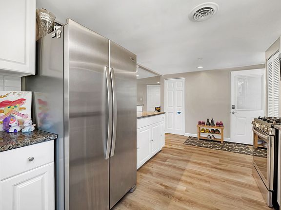 This spacious four-bedroom, two-bathroom tri-level home offers modern living with recent updates, including a new HVAC system in 2018 and a tankless hot water heater. The renovated kitchen features stylish newer cabinetry, sleek countertops, a beautiful backsplash, and stainless steel appliances. Enjoy separate dining and living room with bright living areas on the main level, along with a cozy family room and large pantry/storage closet on the lower level, plus a huge laundry room. The home boasts a huge upper-level bathroom with dual sinks and a tub. Exterior highlights include low-maintenance gutter guards, a stamped concrete patio perfect for outdoor entertaining, and ample driveway parking. Huge fenced in corner lot. This home combines modern amenities with practical features, ideal for comfortable family living.