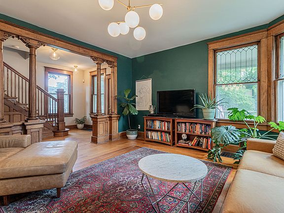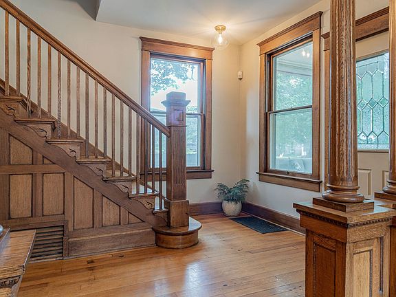 Prepare to fall in love with this thoughtfully renovated historic home that integrates the integrity of the Victorian era with a modern twist. The home features rare, original quarter sawn oak trim and pocket doors, original floors, 10' ceilings, and 6' windows that fill the home with natural light. A plant lover's dream! West Elm lighting throughout the home gives it a modern, designer feel. On the first floor, enjoy the open floor plan with kitchen, dining, and living room all flowing together. The serious chef will appreciate the newer stainless Whirlpool kitchen appliances including a high-end slide in gas range, as well as Quartz counters and a marble backsplash. There is a full laundry room on the main level with a front load washer and dryer and Quartz counter. The adjoining mudroom and nearby half bath, both featuring new tile and high-end fixtures, are must haves for today's busy family.On the second floor, you will find a primary suite with its own updated full bath (another rare find in a home of this era!) An additional full bath on the second level has also been renovated and is perfect for kids and guests.The beautiful sun-filled finished third floor comfortably serves as the 4th bedroom, family room and office. Vaulted ceilings, wall-to-wall beams, and skylights make it a special, inviting space full of architectural interest. A large, partially finished basement provides extra living space and plentiful storage. The fully fenced sunny backyard has incredible 100 + year old trees. Gather around the brick patio during these warmer days and soak in summer. The garage was originally a carriage house and can now hold two cars or serve as additional storage space. Walk to downtown Champaign, the public library, Hopscotch Bakery, and the U of I campus. This home was featured in one of the largest home design blogs, Apartment Therapy, and the sellers are excited to pass on this piece of history to the next stewards! (See the fabulous video for Apartment Therapy under video!)
