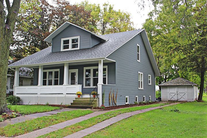 This 1900's two story, 4 bedroom, 2.5 bath, 1st floor laundry home with large amounts of closet and storage space, has been renovated using modern upgrades, while preserving its early 1900's charm. Covered front porch leads into an open plan living space w/living/dining room combo leading to a gorgeous stylish kitchen w/ss appl's and island. First floor 1/2 bath with laundry. Office off the entry or could be a formal dining room or a family room. First floor master w/private bathroom complete with double sink vanity, separate shower and claw foot tub. Additional full bathroom and 3 full bedrooms w/ WIC's on the upper level. Detached 1 car garage. So many updates.....New Roof, New Siding, New Windows, New 200 AMP Electrical Service & Fixtures, New Plumbing through out w/Fixtures, New Water Heater, New HVAC w/Central Air, New Kitchen Cabinets & Counter-tops, New Carpet in bedrooms, Original Refinished Hardwood Floors Trim & Doors.