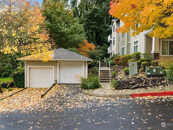 Private lower level end unit in Viewcrest. Spacious 2 bedroom and 2 full bath with freshly painted interior. The open concept floor plan connects the kitchen, living and dining spaces. The kitchen has ample counter space and cabinets perfect for cooking and entertaining. The living room is warm and inviting with fireplace and large windows bringing the outdoors in. The primary bedroom features an en suite bathroom with dual vanity, soaking tub/shower and walk-in closet with shelving. Individual detached 1 car garage with one additional space in front. Covered patio in a park like setting makes this space enjoyable year round with room for BBQ and storage. Appliances stay. No rental cap. Close to amenities, shopping, restaurants and I-5.