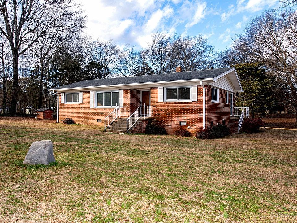 Nestled among mature trees this charming brick ranch is the investment you've been looking for. On a half acre of land, there's room for a boat since you'll be less than one mile from the marina! Near shopping, dining, medical facilities, Ebenezer Park, Winthrop University, York Tech, and award-winning schools. No HOA, low SC taxes, and just a quick trip from all that Charlotte has to offer. Oversized great room, generous windows, primary bedroom with ensuite make for comfortable and cozy living. A neutral kitchen with a charming breakfast area and lots of natural light has a new stove and tile backsplash. Enjoy the view from the window over the kitchen sink to the huge, private, tree-lined backyard. Utilize the private dining room as an office or 3rd bedroom with existing closet/pantry. Well kept with a new roof, newer windows, and waiting for you to make your own! And yes, the shed stays! Showings begin on Saturday!