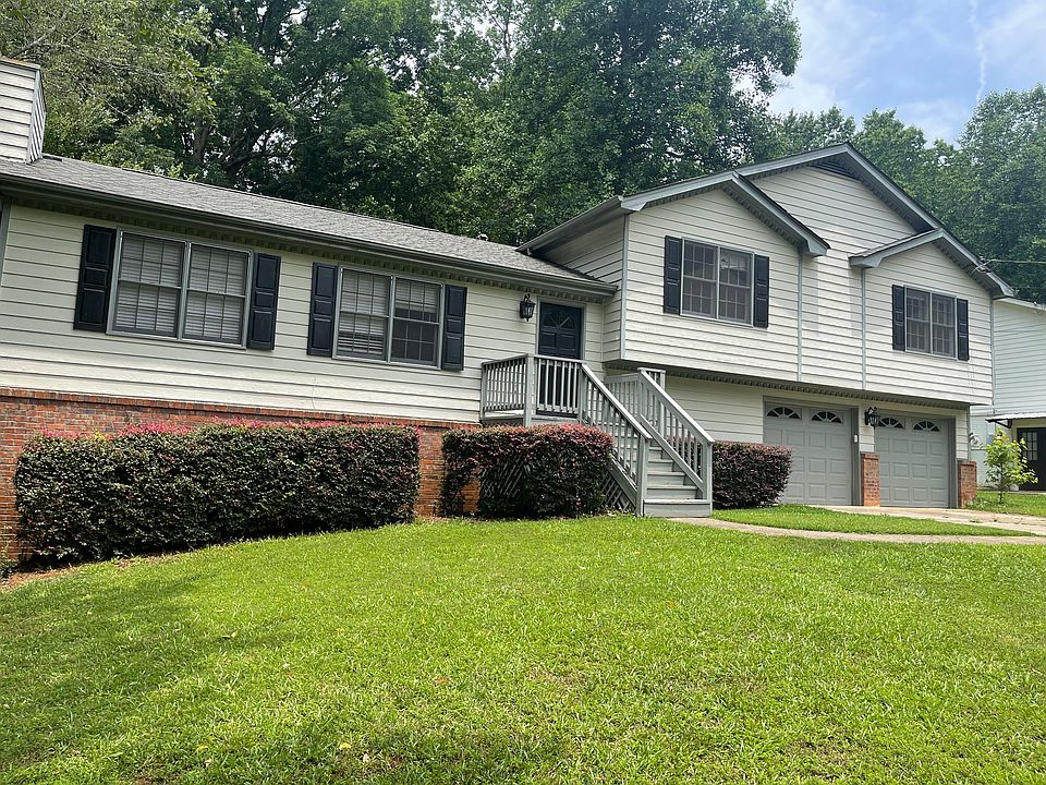 3Bedroom w/Large level- fenced backyard with mature trees (0.62 acre) Large deck off the kitchen for Summer entertaining. Yard backs up to nature trail. Conveniently located off Post Road on quiet Cul-da-sac. Easy to get to 400, Greenway, new Publix. Kitchen is modern W/stone countertops, tile backsplash, ALL new stainless steel appliances. Master bedroom has his & her closets and secondary bedrooms each have walk-in closets. LVT flooring thru out. Deep 2 car garage W/storage room and unfinished walk-out basement. Best schools in the county- West Forsyth High School & Vickory Middle school. Pet friendly and available January 1, 2026
