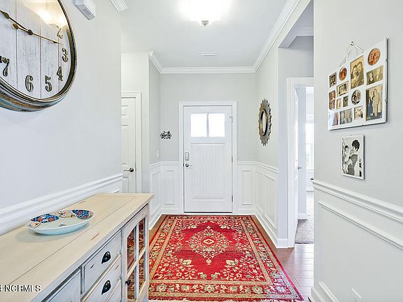 This Montcrest floor plan, by True Homes Builders is in Parkway Crossing of Brunswick Forest, located near the serene Boardwalk nature trail. Home includes 3 bedrooms, 3 full baths, formal dining room, screened-in porch, and relaxing outdoor space. Enjoy the open-concept living room with high ceiling, natural gas fireplace, and sliding glass doors leading to the screened-in porch which overlooks the greenery of the backyard. Durable LVP flooring is found in the main living areas. The kitchen is a cook's delight with stainless-steel appliances, tiled backsplash, white cabinets, natural gas cooktop with range hood, center island with granite countertops, and a butler's pantry. The primary suite offers crown molding, trey ceiling and opens to a private sitting room with built in shelving and window seat. A double vanity with granite counter, make-up station, floor to ceiling tiled shower with built-in seat and frameless shower door, and a walk-in closet grace the primary bathroom. A second bedroom is also located on the first floor, as well as a guest bathroom complete with granite counter. The third bedroom and third bathroom are located on the second floor, making it great for guests. A built-in folding/craft table is found in the laundry room, as well as upper and lower cabinetry and utility sink. The covered front porch and back paver patio maximizes your outdoor living space. HOA fees include lawn care and community amenities. Features of Brunswick Forest include: three outdoor & one indoor pools, hot-tub, Fitness & Wellness Center, two cardio/weight rooms, tennis/pickleball/basketball courts, Hammock Lake, walking trails, parks, playground, dog park, kayak launch and meeting rooms. Cape Fear National Golf Course on site, membership required. The Villages of Brunswick Forest is a commercial area with restaurants, shopping, and medical facilities. Only a short ride to downtown Wilmington or area beaches.