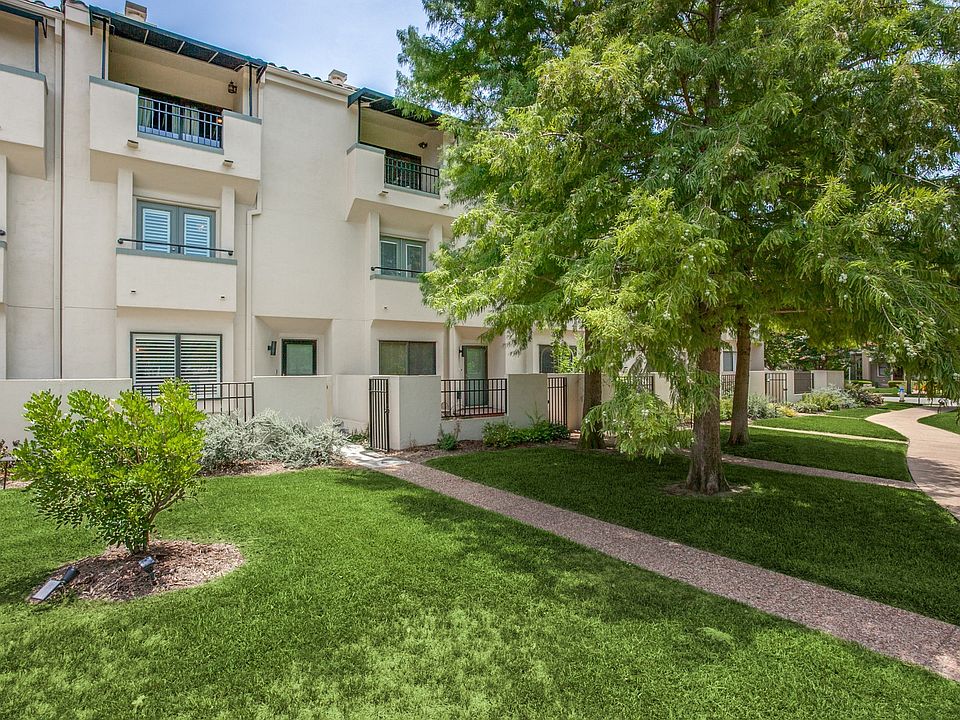 Fully renovated two bedroom plus study with attached two car garage in the heart of Oak Lawn. Private entrance with gated stone courtyard, located next to a small park. Ugrades galore in knocked out kitchen with granite counters, pendant lighting, glass front cabinets, built-in wine cooler, high end stainless appiances with built-in fridge and double ovens. Open kitchen-dining-living with high vaulted ceiling, fireplace, magnolia shutters, hardwood flooring. Study with custom built-ins and balcony is adjacent to the kitchen. Master suite with fireplace, vaulted ceiling, hardwood flooring, three closets, and private balcony. Luxurious carrara marble master bath with large walk-in shower and double basins.