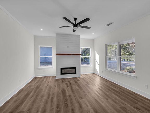 Welcome home to this stunning one-level, 3-bedroom, 2-bath new build featuring a spacious 8-foot front porch perfect for relaxing evenings. Step inside to an inviting open floor plan where the great room with an electric fireplace flows seamlessly into the bright, sun-filled kitchen. You'll love the 3x5 kitchen island, stainless steel appliances, tile backsplash, and stylish finishes throughout.