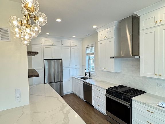 Newly Renovated Ravenswood Manor Duplex-Up Penthouse - 5 Decks, Skyline Views & Designer Finishes. Living on the Park. Introducing a rare opportunity to own a stunning duplex-up penthouse in the historic and charming Ravenswood Manor. This newly renovated 3-bedroom, 2-bath residence sits directly on Horner and California Parks at one of the neighborhood's highest elevations-offering unobstructed views of the Chicago skyline and lush park surroundings. Step into a home that radiates space, light, and modern elegance. The chef-inspired kitchen features floor-to-ceiling white shaker cabinetry, quartz countertops, a designer tile backsplash, Samsung Luxury Series stainless steel appliances, and an expansive island-perfect for entertaining and everyday living. The main level includes a custom-designed entry with mudroom-style closet organizers, two bedrooms with custom-built closets, a designer-appointed full bathroom, and two private decks for seamless indoor-outdoor living. Upstairs, the luxurious primary suite is a private retreat, complete with a custom walk-in closet, additional built-in organizers, and a spa-like en-suite bathroom. Enjoy a freestanding soaking tub, glass-enclosed walk-in shower, wall-separated toilet, and a sleek white oak narrow shaker double vanity-adding warmth and modern sophistication with heated floor. The suite is further elevated by access to three private decks, offering peaceful, open-air privacy. Integrated surround sound enhances the home with a premium audio experience throughout. At the very top, the rooftop retreat-your fifth private outdoor space-offers a breathtaking panorama. From here, take in the natural beauty of the Parks and the sweeping views of the Chicago skyline from your elevated oasis. This one-of-a-kind penthouse seamlessly blends thoughtful craftsmanship, luxury finishes, and rare outdoor living. A true urban sanctuary that will make you say "wow" at every turn.