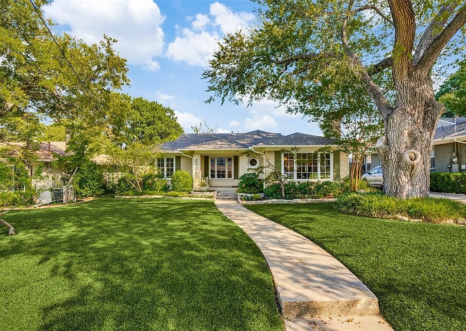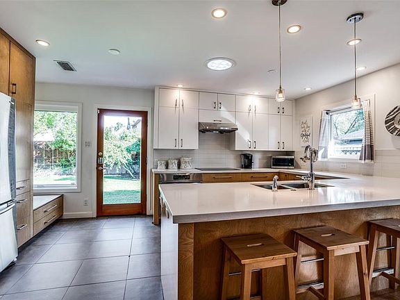 Sleek Lakewood cottage with mature landscaping & close to Hillside Village & White Rock Lake. The open living, dining, kitchen meets today's lifestyle. Living room features wood floors, a fireplace & oversize windows. The modern kitchen has quartz counters, stainless appliances, subway tile backsplash & tile flooring. There are two bedrooms with wood floors & served by an updated hall bath with dual vanities, tile flooring, contemporary lighting & mirrors. There is a study or 3rd bedroom with a powder bath (which could be expanded to full bath). Additional amenities: stack washer & dryer, 2 car garage and sprinkler system.