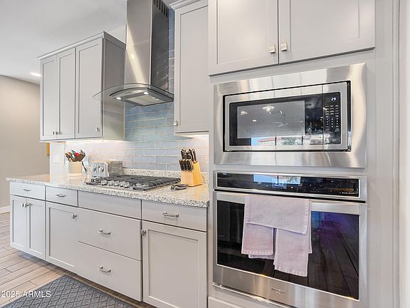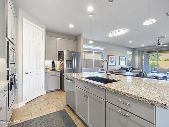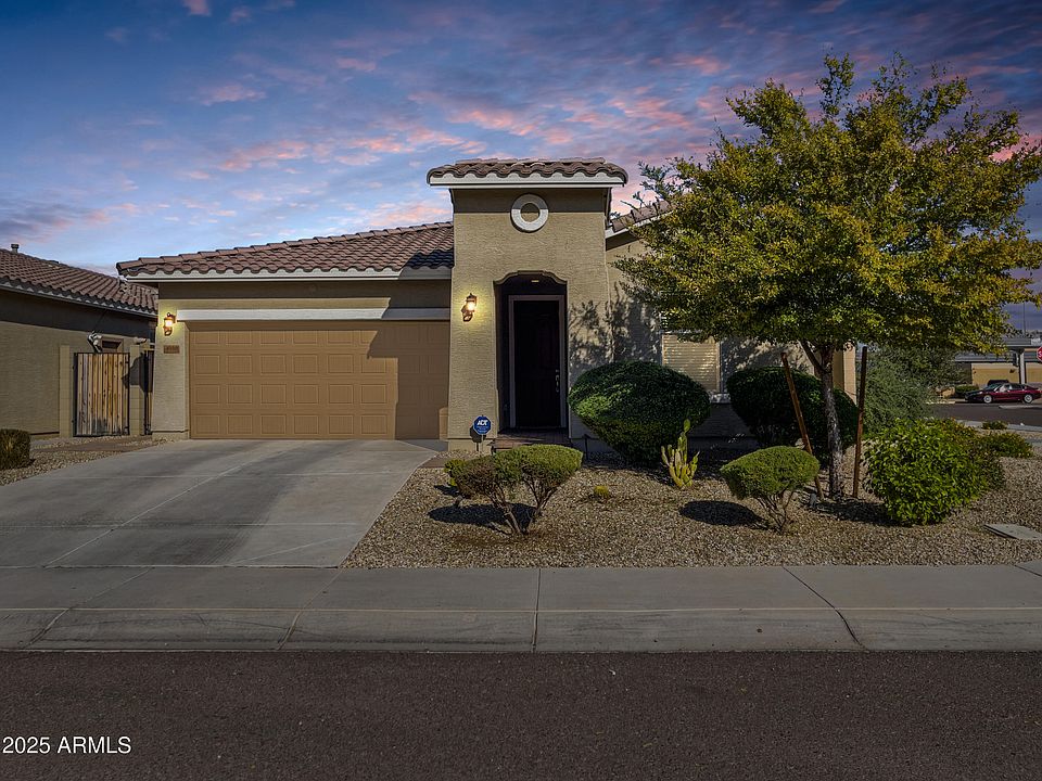 Beautifully upgraded 3-bedroom+den home in the Heart of Laveen! This 1679sqft single-level property showcases extensive builder and owner upgrades throughout. The stunning chef's kitchen features custom soft-close cabinetry with pull-out drawers, a composite sink, and premium finishes. A 3-panel sliding glass door opens to the backyard creating seamless indoor/outdoor living. Primary suite offers a spa-like walk-in shower with a rain shower head. Energy-efficient features include a tankless water heater, and 240-volt outlet ready for EV charging. Backyard is fully landscaped with drip irrigation and extended pavers. Additional upgrades include polyaspartic garage flooring, water softener, home security and 3-zone thermostats. Move-in ready and meticulously maintained-This Is a Must-See!!