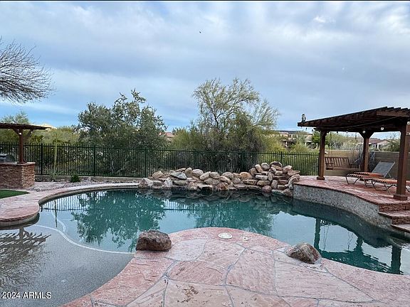 BIG price Reduction! Tranquility at it's finest, Amazing Mountain Views, Create your dreams, Anthem has ''A'' rated Schools with options of public, private, and a Basis coming this Fall of 2024, No one to build behind you for peacefulness and serenity, Paid off solar for power savings, This home has not been sold before so the original owners presents this home with custom upgrades like stonework, wrought iron inserts, glass/mirrored recessed Display shelves, a great floorplan with Master Suite on ground level, butler area off Kitchen, open family room with vaulted ceiling, a formal living room, a den/office up in front of home with a half bathroom, Upstairs has 3 spacious bedrooms with 2 other full bathrooms & another half bathroom, a Loft/game area for the kids & an Office/bonus room if you like to work from home or make it a hobby room! A refreshing pool with a gazebo to put a hot-tub, Take advantage of the pool and Community Amenities with a fitness center, rail-road train, Music fests in the Amphitheatre, and a huge Christmas Tree Lighting festivity at the Outlet Mall!! Easy to get out of the Heat and visit Prescott, Sedona, and Flagstaff. Don't miss out on this wonderful home! Furniture/furnishings can be negotiated with seller as well.