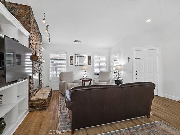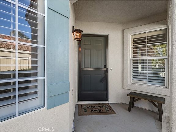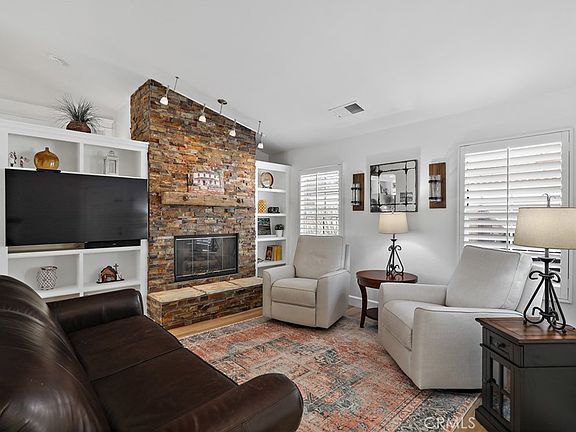 YOU WILL LOVE ALL THE UPGRADES in this spectacular single level home in The Colony, one of SoCal's finest 55+ GATED SENIOR COMMUNITIES. The home has been TOTALLY UPDATED with wood-look tile flooring, plantation shutters and tall baseboards throughout. The kitchen boasts quartz countertops & white kitchen cabinets with soft close doors, stainless steel appliances & sink, updated faucet & lighting. A moveable island offers plenty of room for casual dining and more storage in the kitchen. The living room features a stunning stacked stone fireplace with accent lighting, display shelves & TV niche. You will love the remodeled primary bath with designer shower with rimless glass door, vanity, lighting, faucet & mirror. All interior doors were replaced, updated hardware, spectacular molding and extra cabinets add to the appeal. Bedroom 2 has brand new closet doors added and Bedroom 3 is used as an office/den. Guest bath has a new toilet, new fixtures on the sink and tub and updated lighting & towel bars. There is an extra linen closet behind the fireplace. Upgraded Lennox HVAC system is about 3 years old. The back and side yards offer a peaceful backdrop for outdoor relaxation with a newish aluminum patio cover & you overlook an HOA maintained greenbelt. The oversized lot has a nice side yard separately fenced for your pets or garden enthusiasts. All electrical plugs & switches were replaced. The workmanship & attention to detail make this home ideal for buyers who appreciate top quality. The Colony is a PREMIER SENIOR COMMUNITY for ages 55 and better with a RESORT CLASS CLUBHOUSE, heated pool, 2 spas, lighted pickle ball/paddle tennis & tennis. Life at The Colony is vibrant and fulfilling, offering an impressive list of amenities including a gym, library, ping pong, billiards, hair/nail salon. There are groups & activities for a variety of interests with an auditorium for shows, dances, concerts, movies, bingo & parties for all occasions. A privately owned18-hole golf course is inside the gate. HOA waters & maintains all front landscaping. Guard gated entry & 24-hoursecurity patrol. Call today to enjoy TRUE RESORT STYLE SENIOR LIVING on a quiet interior street in a welcoming & friendly community.