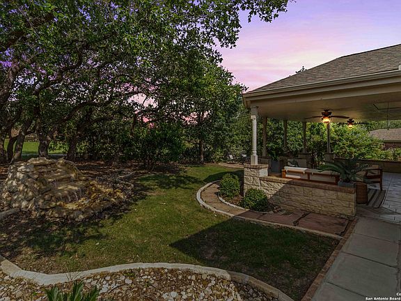 Pristine Condition. Inspected and Move-in Ready! Highly motivated Seller offers $15K in concessions! Brand-new certified A/C Coil as of September 2025. Upgraded GAS powered A/C unit for lower utility costs! Gorgeous Wheelchair-Accessible 3-Bedroom Retreat with Modern Upgrades. Located in the highly sought after Dell Webb Hill Country Retreat, this meticulously upgraded 3-bedroom, 3.5-bathroom home, is perfectly situated with a beautiful green space and a scenic walking path directly behind the backyard. Surrounded by mature trees and bathed in tons of natural light, this residence offers a seamless blend of accessibility, luxury, and outdoor living. Step into an inviting interior featuring upgraded wood floors, built-in surround sound, and sun tube natural lighting that enhances the open-concept design. The gourmet kitchen is a chef's delight, boasting upgraded cabinets with custom pullouts, under-cabinet lighting, and a natural gas range. Each bedroom enjoys the convenience of its own private bathroom, with the master suite elevated by a large walk-in closet, huge garden tub, sophisticated bidet and abundant space to unwind. Outside, entertain in style on an extended covered patio that easily seats 50 people and is pre-plumbed with natural gas for your grill or gather around the secondary firepit patio, surrounded by beautiful live oaks and a tranquil outdoor waterfall. Additional highlights include an elevated front porch, overlooking terraced flowerbeds and a elegantly designed wheelchair accessible sidewalk leading up to the porch. Ample storage, with multiple attics as well as upgrades in the garage ceiling. The fridge and window treatments convey, adding immediate move-in appeal. With thoughtful upgrades throughout, including additional storage and energy-efficient features, this home offers a rare opportunity to enjoy modern living in a peaceful, nature-inspired setting. Don't miss your chance to own this exceptional property!