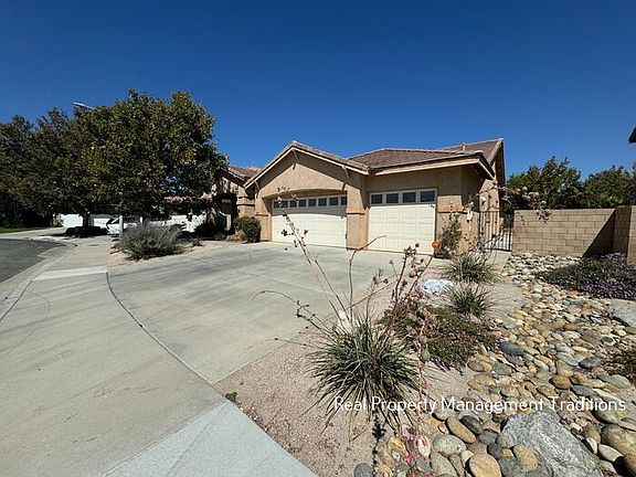Welcome to the Fabulous West Palmdale Home! This stunning 4 bedroom, 2 bathroom house is located in the desirable Palmdale, CA area. The fully landscaped front and rear yards provide a beautiful outdoor space to enjoy. Inside, you'll find laminate and tile flooring in the common areas, along with an indoor laundry area for convenience. The kitchen is open to the family room, which features a cozy fireplace and a slider leading to the back patio. The primary en suite includes a walk-in closet, separate soaking tub, and shower for added luxury. With a view of the RV golf course and a 3 car garage with auto openers, this home has everything you need for comfortable living. Plus, the refrigerator, washer, and dryer are included for your convenience. Don't miss out on this amazing opportunity to make this house your new home! Landscaping Included Tenant responsible for all utilities Technology Package Required in Lease Pets considered Contact us to schedule a showing.