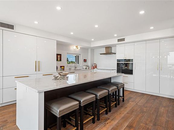 Step into a world of luxury with this stunning fourth-floor beachfront residence, where every detail has been crafted for a life of elegance and tranquility. From the moment you enter, you’re greeted by endless views of the beach and Gulf, framed by floor-to-ceiling windows throughout the unit. The spacious, open layout flows seamlessly from room to room, allowing the breathtaking landscape to become part of the home’s design. Remodeled to perfection, this condominium features warm oak flooring throughout, complemented by custom cabinetry and built-ins that provide style and storage. The walls are adorned with bespoke wallpaper treatments, while the lighting is highlighted by elegant, custom fixtures that create a soft, inviting atmosphere. The heart of the home is the chef-inspired kitchen, designed for beauty and function. A large quartzite island sits at its center, surrounded by high-end Wolf and Sub-Zero appliances and custom cabinetry that offers ample storage. Whether cooking a quiet dinner or hosting friends, this space effortlessly combines sophistication with practicality. The owner’s suite feels like a private retreat, with sweeping beachfront views and a walk-in closet featuring custom built-ins that provide the ideal blend of form and function. The en-suite bath offers a spa-like experience, with luxurious finishes designed to pamper. Two additional guest bedrooms are thoughtfully situated for privacy, each with its bath, making this home ideal for hosting family and friends. Every room is offered fully furnished, with sophisticated and luxurious pieces that complement the home’s elegant design. Just across the street from the iconic Venetian Village, and available boat slips at Park Shore Marina, this condominium places you at the heart of it all while providing a peaceful, private sanctuary to call home. Allegro is considered a boutique high-rise and just underwent a complete remastering showcasing a sleek new lobby, atrium, common areas plus more. This is more than just a home, it’s a lifestyle.