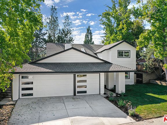 Stunning contemporary remodel in the beautiful foothills of Agoura. No detail overlooked in this reimagined masterpiece. A crisp, white palette awaits when you pass through the beautify crafted front door. Immediately your eyes are directed to the white paneled wall adding a perfect touch that is both clean and crisp, yet also inviting. Next you enter the redesigned kitchen with top of the line appliances, views of the mountains and an open feel that passes through to the spacious living room. Caesar Stone counters, white shaker cabinets and modern Chevron backsplash all add to this kitchens perfection. Downstairs bed and bath, perfect for any size family. Upstairs, one bedroom was converted to spectacular master suite bringing the entire home to a more desirable 4 bed, 3 bath configurations. All done with permits. Outside you will find stunning views and plenty of yard space for outdoor fun. Three car garage, new HVAC and modern garage doors all add to the spender of this home