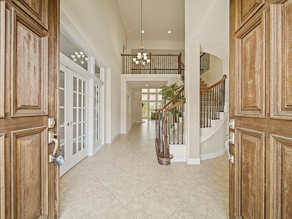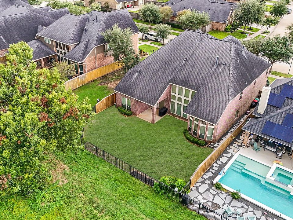 Gorgeous 5 or 6 bedroom home with 2 bedrooms downstairs with en-suite bathrooms. Large game room upstairs with 3 additional larger bedrooms, and a bonus room that could be a 6th bedroom!Backyard offers tranquil meadow views with iron fence. NO BACK NEIGHBORS. Home offers high ceilings, a large private study/office and separate dining area. Large island bar with additional seating! Walk in pantry, new water filtration system stays! Zoned to exemplary schools and close to recreation facilities which include pools, tennis and pickle ball courts, trails, ponds, work out facility and all the shopping and dining of this area! 3 car garage!