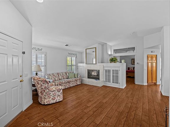 Welcome to this 3-bedroom, 2-bath home with optional office area, offering 1263 square feet of comfortable living space, ideally situated on a corner lot that backs to a peaceful greenbelt in the highly desirable Colony 55+gated community in Murrieta. This single story floor plan offers an inviting open-concept layout featuring a cozy living room fireplace, shutters and durable laminate flooring throughout. The kitchen provides generous cabinetry and counter space, perfect for both everyday meals and entertaining. The primary suite includes a walk in closet and private bath, while the additional bedrooms offer versatility for guests, and office or hobbies. Step outside to a private backyard retreat with no rear neighbors-enjoy serene greenbelt views and privacy, and premium corner lot. Residents of The Colony enjoy vibrant, resort-style amenities such as a championship 18-hole golf course, clubhouse, swimming pool and spa, tennis and pickleball courts, fitness center, and a wide range of social activities. The HOA maintains front yard landscaping and provides 24-hour guarded gate security for worry-free living. This home offers the perfect blend of comfort, privacy, and active adult living in one of Murrieta's most sought-after 55+ communities.