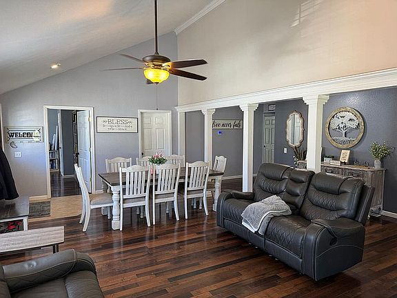 3.11 acre of land with a 4-5 bedroom 2 full bath with open floor plan. Hard wood and tile flooring through the entire house. Front and back porch