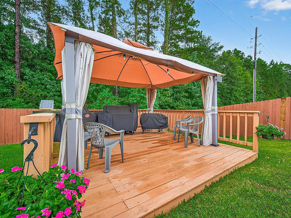 Backyard oasisFully fenced yardOpen-concept floor planOutdoor diningCovered gazeboGenerously sized game roomMature trees