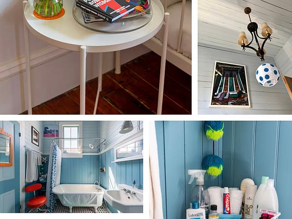 Shared backyardAntique furnishingsInduction burnersModern workspaceIn-unit laundryFront porch accessAc and heat