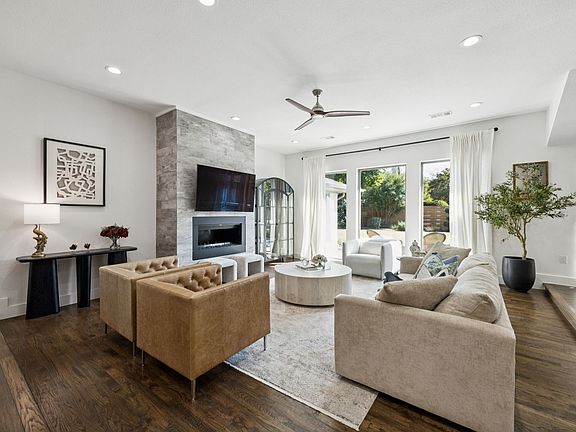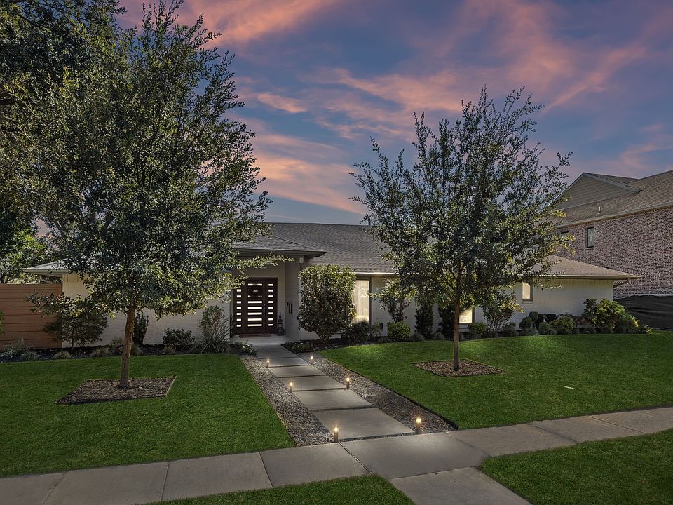 A luxury ranch-style residence in the Dallas private school corridor, taken to the studs and completely redesigned in 2018 for modern living with thoughtful sophistication. This home offers a split-bedroom floor plan with 4 bedrooms, 3.5 bathrooms, a dedicated office, and two spacious living areas, all set under 10-foot raised ceilings that enhance the open, airy feel. Situated on an incredibly manicured lot with pristine curb appeal, the property offers a serene outdoor setting complemented by perimeter landscape lighting and a smart garage system. Inside, real nail-down hardwood floors, high-end finishes, and abundant natural light set the tone for refined living. The chef-inspired kitchen features quartz counters, a large island with USB outlets, and casement windows throughout the home that bring in fresh air with ease. The private primary suite is thoughtfully separated from the secondary bedrooms, creating a true retreat. Every detail has been considered, including remote-controlled fans in every room, low-voltage wiring with a central tech hub, and wall-mounted cable-electric ready plugs, allowing for framed televisions in every space. This home is built for efficiency and comfort with closed-cell foam insulation throughout, tankless water heater, replaced sewer, plumbing, electrical systems, and 220V plug in the garage for electric vehicle charging. Two attic spaces—one over the garage—provide ample storage and easy access. Located just down the street from Glen Meadow Park, and Glen Cove Pool, residents enjoy quick access to green space, trails, and outdoor recreation. With its full modern transformation, premium upgrades throughout, and a like-new feel, this turnkey luxury property offers an exceptional lifestyle in a premier Dallas location. ***Up to 9$K towards closing costs or rate buy down if using sellers preferred lender.***