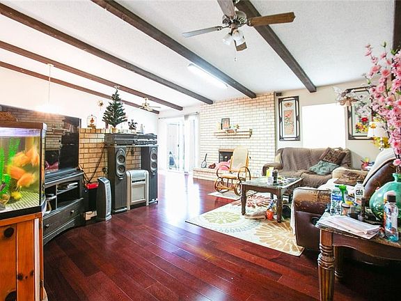 Visit this charming all-brick ranch in the Woodmere neighborhood of Harvey. Living room features cathedral ceilings and a brick fireplace. The four bedrooms will accommodate a large family. Garage has been converted into an extra room, potentially a fifth bedroom. Hardwood kitchen cabinetry. At the entrance there is a lovely fish pond. A quiet neighborhood with well-maintained homes.