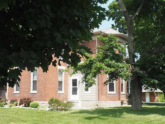 1885 brick homestead with gorgeous slate roof (maintained by Dahm Roofing), and 3 car garage. Zoned heating and cooling (upstairs unit '12, downstairs unit '09). High ceilings.Updated oak kitchen, abundant cabinetry, breakfast bar, ceramic floor. Home and garage professionally painted '11. Windows and insulation back sunroom '06. Brick on house and milk rouse professionally tuck-pointed '11. Asphalt drive was paved and asphalted '10 and resealed '13. Original hardwood floors thru-out. Original milk house used as storage shed has masonry fireplace (amazing potential for potting shed or play house). Main floor bedroom could be main floor den. Double closets off master bedroom. Huge basement being used for workshop and storage. New furance in 2012 and 2014.