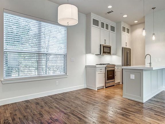 Modern 2 bed, 2.1 bath townhome w tons of outdoor space & wood floors thru-out. 1st level is the foyer, 2 car garage & yard space w turf for ease of care. The living level, located on the 2nd floor, open floorplan with sleek kitchen hosting SS apps, quartz counters & breakfast bar as well as living room anchored w modern decorative FP w direct access to a balcony. Spacious master suite offers dual sinks, walk-in shower & closet. The secondary BR, located on the 2nd level w ensuite bath. Rooftop deck, plumbed for gas, w treetop views towards Turtle Creek. Includes contemporary styling, decorative lighting & fantastic Oak Lawn Location w easy access. 2021-04-20