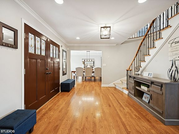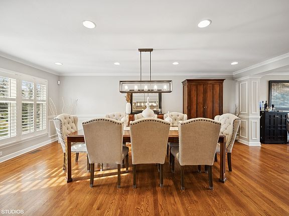 This stunning 5-bedroom, 3.5-bath colonial home has been meticulously updated to blend timeless elegance with modern convenience, offering a layout perfectly suited for today's lifestyle. From the moment you enter, you are welcomed by a new stone entrance and double doors that open to a grand foyer. Gleaming hardwood floors and recessed lighting throughout create a bright, inviting atmosphere. The banquet-size dining room is a true centerpiece, featuring wainscoting, crown molding, and custom plantation shutters-perfect for holiday gatherings or intimate dinners. The dining room flows effortlessly into the gorgeous living room. The chef's kitchen is a dream come true, showcasing custom cabinetry, a large peninsula with a beverage fridge, top-of-the-line stainless steel appliances, and stunning granite countertops. The eating area provides a picturesque view of the expansive backyard, while the kitchen opens seamlessly into the light-filled family room. This space is highlighted by a gorgeous stone fireplace, flanked by custom built-in cabinetry with granite countertops and floating shelves. Sliding doors lead to a massive deck, making indoor-outdoor living effortless and perfect for entertaining.  The main level also features a beautifully updated powder room and a highly functional laundry/mudroom, complete with custom cabinetry, built-in cubbies, and newer washer and dryer for added convenience.  Upstairs, you'll find four generously sized bedrooms with hardwood floors, ample closet space, and two full bathrooms. The luxurious primary suite is a true retreat, boasting a dual-sink vanity, a separate oversized shower, a jacuzzi tub, and a custom-organized walk-in closet, along with two additional closets for maximum storage.  The lower level is a fantastic surprise, offering a spacious recreation/game room, a dedicated area for an office or exercise room, and a full kitchen with an eating area-perfect for guests or family gatherings. A fifth bedroom with generous closet space and a full bath makes this lower-level ideal for an in-law suite or au pair arrangement. Plus, the large utility room provides additional storage space, maximizing the functionality of this floor.  Outside, you'll enjoy the tranquility and privacy of the fenced-in backyard, lush landscaping, expansive deck with a pergola perfect for al fresco dining, relaxing, and entertaining. Additional outdoor features include a shed and a dog run along the side of the house. The attached two-car garage includes built-in storage. A few recent updates include a new roof (2018), exterior painting (2022), two new water heaters (2022), and a new washer and dryer (2023), to many to mention. This home is located in the highly sought-after area with access to top-rated schools-Winkelman Elementary, Field Junior High, and Glenbrook South High School-and offers the added benefit of Glenview services. With its impeccable updates, thoughtful design, and prime location, this home is move-in ready and ready to provide a lifetime of comfort and enjoyment.