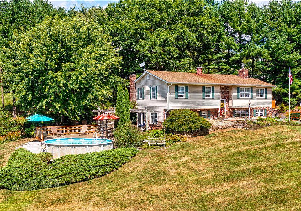** UPDATED PRICE!! ** Welcome to 4032 Turkeyfoot Rd — A Place That Feels Like Heaven on Earth! From the moment you arrive at this stunning property, you’ll understand that feeling! Nestled on 3.25 acres (2.78 acres plus an additional .47-acre parcel), the grounds are a masterpiece of lovingly maintained landscaping and hardscaping, offering beauty and serenity in every direction! This updated home has been expanded with two thoughtful additions—one creating a bright, airy sitting room off the kitchen with soaring ceilings and a wall of windows, and the other enlarging the living room, also surrounded by windows, making it the true heart of the home! The open-concept main level is surrounded by natural light, creating a perfect setting for entertaining or quiet family gatherings. The kitchen is both stylish and functional, featuring soapstone countertops, subway tile backsplash, stainless steel appliances, recessed lighting, and a porcelain farmhouse sink—a dream for anyone who loves to cook and connect while entertaining! The spacious living room has vaulted ceilings, custom built-ins, and a propane stove framed by a floor-to-ceiling stone accent wall, making it the ideal place to cozy up as the leaves turn and the seasons change. A generous dining room allows everyone to gather around the table for holidays and special occasions. Down the hall, the full bath has an updated (2025) walk-in tile shower, skylight, tile floors, and stainless finishes. You will find at the end of the hallway two generously sized bedrooms, both with ceiling fans. A warm and welcoming primary suite with hardwood floors and dual closets completes the main level. The main level also has beautiful hardwood floors that add to the warmth and personality of the home. The lower level offers incredible versatility! Currently arranged as a large craft and sewing room, it also includes a half bath and laundry. There is a wood stove that helps take the chill out of the air as it gets cooler. There is also a nice-sized storage room with built-in shelving, and office space, also with built-in shelving, allowing anyone to have a private setting to work from home! You can't help but to be drawn outside to the brick patio and pergola, where you can overlook the pool surrounded by composite decking with built-in seating and open fields beyond—an outdoor sanctuary perfect for summer lounging or fall evenings around the firepit! For hobbyists, woodworkers, or those who simply need extra space, this property delivers! And it delivers big! An oversized two-car garage (26 x 24) with an attached workshop (20 x 11), loft storage, and cooling ceiling fans is just the beginning. The workshop has concrete floors and electricity, perfect for all of your needs if you love working outside. There is also plenty of space for tool storage in this workshop, and behind the workshop, you will find a potting station for all of your gardening needs! The separately deeded parcel includes a beautiful old barn-turned-workshop with concrete floors and electric, offering endless possibilities! The American Flag painted on the barn doors was created by an artistic neighbor! Whether you’re cooling off in the pool, gathering for a crab feast in the garage, or unwinding to the gentle sounds of the waterfall, crickets, and frogs beneath the stars, this property is a haven that invites you to slow down, breathe deeply, and truly savor life. Come experience 4032 Turkeyfoot Rd for yourself. The moment you step out of the car, you may never want to leave! Schedule your appointment today!