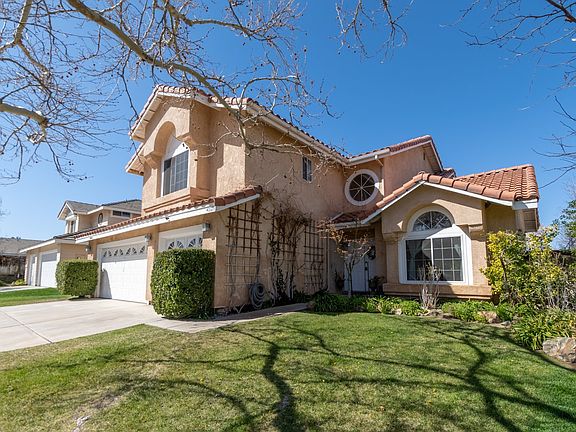 A suburban desert home of 2,415-sqft with an attached 3-car garage is ready for lease in Palmdale. Inside this picturesque two-story home, entertain with ease in the living and dining room lined with plush carpet floors, illuminated by natural light from the large French windows, and boasting high ceilings. Wood cabinets, tile countertops, and a center island stylize this large kitchen equipped with built-in stainless-steel appliances. Relax and unwind in the family room as a soothing fireplace creates a cozy ambiance. Up on the second floor, the huge primary bedroom suite includes a versatile lounge area and an en-suite bathroom housing a dual sink vanity, shower, and tub. Outside, the shaded backyard provides a lovely venue for all outdoor gatherings any time of the year. Located down the street from Walmart, Highland High, AV Mall, local restaurants, the 14 FWY, and more!