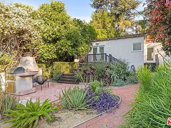 Sitting at the base of Beverly Glen, this enchanting single-story Spanish home is ensconced in a verdant, private and serene setting. The central living room boasts exposed wood beams, built in bookshelves, a glass-enclosed fireplace, hardwood floors and a restful reading lounge. The chef's kitchen -- complete with granite countertops, custom satin sheen cabinetry, and stainless steel appliances -- directly flows into the formal dining room, with its abundance of natural light and wedding cake decorative molding. The single-story floor plan delivers 3 spacious bedrooms and 2 bathrooms, one of which is en suite and opens to an expansive exterior, with resort-like grounds, perfect for dining and entertaining. The circular drive grants easy access to and from the long, gated driveway and 2-car garage. Located near the numerous nature trails of the Santa Monica Mountains as well as the area amenities of Ventura Boulevard, including dining, retail, and the soon-to-open Whole Foods Market.