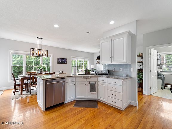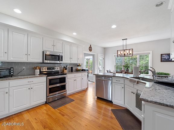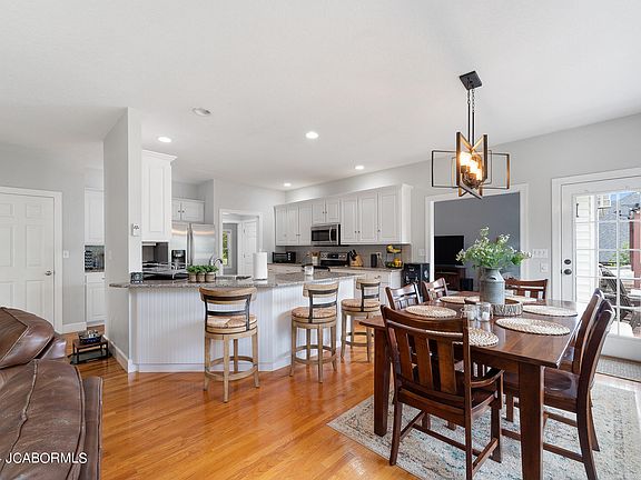 This impeccably maintained home on Jefferson City's west side features a spacious master bedroom with a walk-in closet and a large bathroom with a jetted tub. The kitchen boasts beautiful granite countertops and an eat-in area, seamlessly flowing into a cozy hearth room with a fireplace. Upstairs, you'll find three generously sized bedrooms and two bathrooms. The lower level offers an additional family room with a wet bar, ample unfinished space for storage, and a John Deere garage. The backyard is park-like and meticulously cared for, perfect for outdoor enjoyment.