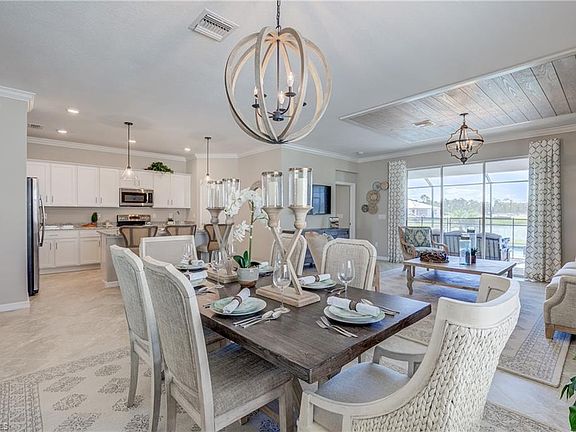 The Venice offers 1,849 square feet of versatile living space in a desirable split plan with three bedrooms and three full baths. This home boasts granite vanities in all baths & tile on diagonal extended throughout main living areas. The spacious island kitchen blends seamlessly with the family room and formal dining, flooded with light from large glass sliders leading to the generous screened lanai. An indulgent master suite features two walk-in closets, dual sinks and a large spa shower. This home is complete with a two-car garage. River Hall is a master-planned community designed to include distinct villages, a school, fire station, Town Hall and a Town Square. Set among 1,500 acres of oak hammocks, where half of the land is set aside for open space and lakes, our gated communities are connected by meandering trails and sidewalks. Six miles east of I-75 in Lee County, River Hall is near Fort Myers but a world unto itself. River Hall feels like Old Florida - comfortable, friendly and fun. Virtual tour & photos are of like model & are shown for display purposes only. Virtual showings are available. Estimated completion November 2020.