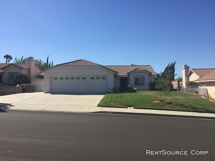 SCHEDULE A SHOWING ONLINE AT: showmojo.com/lh/ecff60a04d *MORE PICTURES COMING SOON... This westside Palmdale pool home is located off of Rancho Vista Blvd and Town Center Drive. The property offers 3 bedrooms and 2 bathrooms with 1,374 sq ft of living space. Some included amenities you will find at this property are 3 car garage, large drive way with possible RV access, pool with built in spa, hardwood flooring throughout with carpet in the bedrooms and a remodeled kitchen, vaulted ceiling, ceiling fans. Washer, Dryer, Refrigerator included with rental. Gardener and Pool/Spa services covered by owner. *NO PETS *NOT SECTION 8 APPROVED Available 5-1-2019 Please visit www.rentsourcecorp.com or call 661-430-5355 for more information. 3 Car Garage Covered Patio Gardener Services Included Landscaped Yard No Pets Allowed Pool Services Included Pool/Spa Refrigerator Included Remodeled Kitchen Washer/Dryer Included