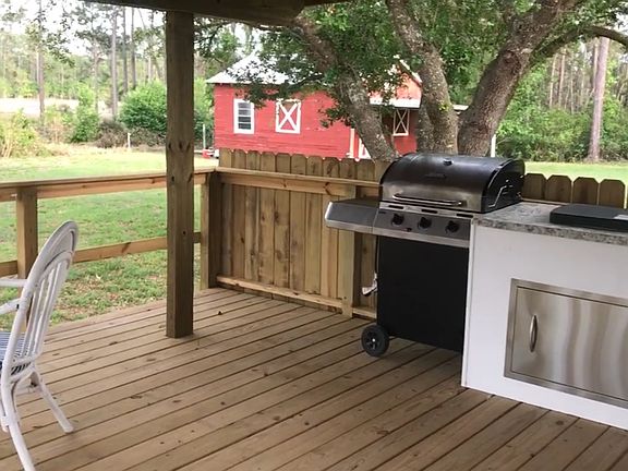 Outdoor living! Beautiful remodeled 3 Bedroom 2 Bath home on 5 Acres Water Front with Horse Pasture and potential second house or barn Completely redone with: * New Floors * All new Stainless Steel Appliances * Separate Pantry * Tile Back Splash * Eat at Kitchen Island * Matched Sliding Doors for easy viewing of your horses or other farm animals * Interior Sliding Barn Door * Outside Kitchen with Stainless Steel Gas BBQ and Cook top. As well as refrigerator outside, sink with hot and cold water and food prep area all on oversized raised deck which overlooks horse pasture and run-in shelter. New interior doors and windows. Brand new high efficiency Air Conditioner and Heat Pump. Split Sleeping Plan. New Bathrooms including all tile showers and new vanities, toilets and showers. Separate Masters Suite including walk in closet with closet system. Double sinks and vanity makeup section in Master Bath.