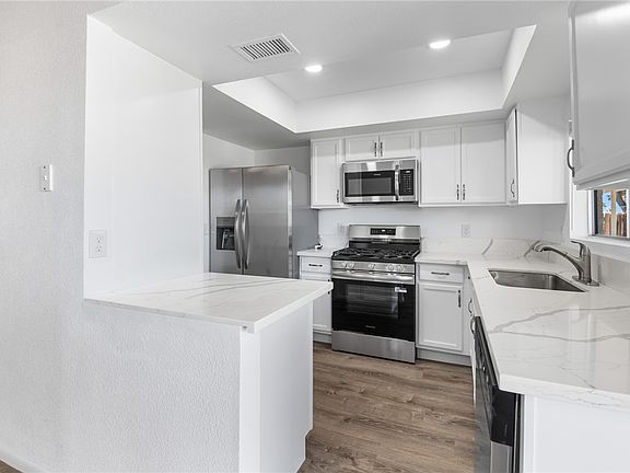 Your Dream Home Awaits in a Prime Location! Discover unparalleled living in this meticulously renovated residence, perfectly situated in a highly sought-after area of town. Enjoy the ultimate in convenience with easy access to all amenities, from top-tier shopping and dining to lush parks and vibrant entertainment. Step inside and prepare to be captivated by a beautifully transformed interior where every detail has been thoughtfully considered. The kitchen boasts brand-new appliances, including a gas stove, dishwasher, microwave, and refrigerator. You'll love the sleek, new quartz countertops and cabinets that elegantly grace both the kitchen and baths. Throughout the home, upgraded lighting illuminates every corner, creating a warm, inviting, and sophisticated ambiance. Beyond the stunning interior, you'll find even more to love. The garage floor has been freshly painted, offering a clean and polished look. Step outside to your private oasis: a covered back patio that's perfect for entertaining or simply unwinding. Hosting outdoor gatherings is a breeze with a convenient gas line already in place for your outdoor kitchen. A beautiful mature tree nestled within the fenced backyard provides not only privacy and security but also a wonderful canopy of shade for those warm days. This home is truly move-in ready, offering the perfect blend of modern upgrades and an unbeatable location. Don't miss your chance to make this exceptional property yours!