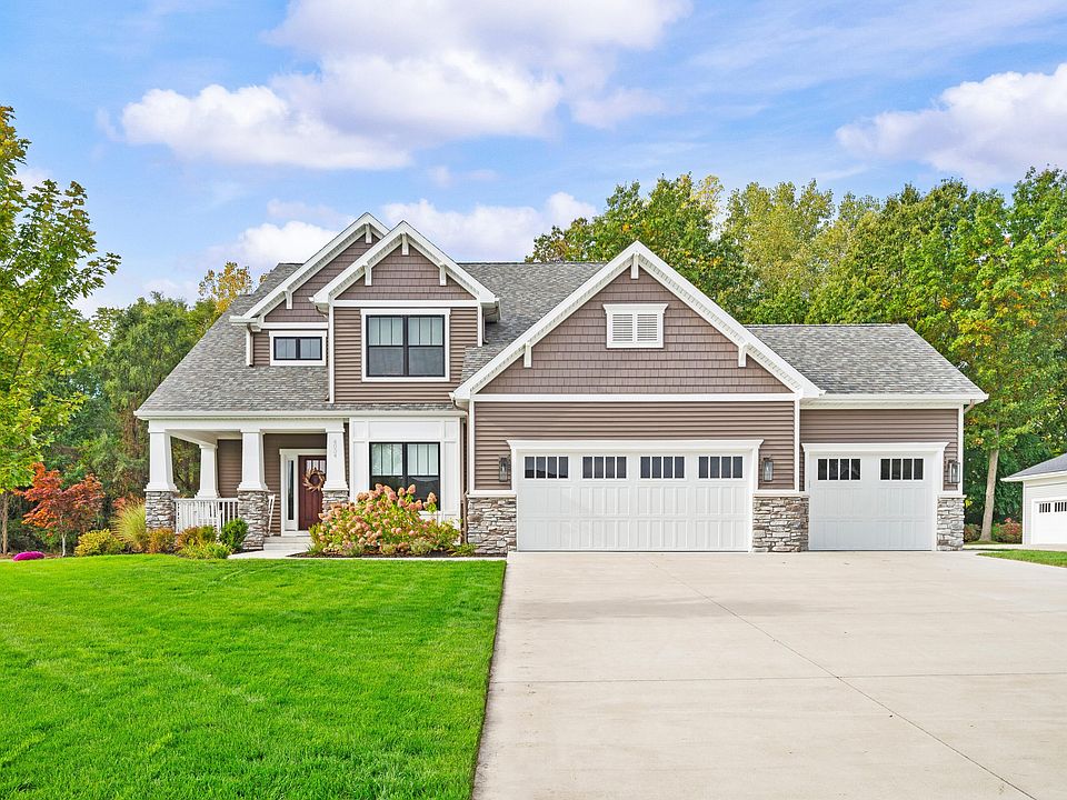 Experience refined living in this beautifully built Saint Joseph home, where quality construction and timeless design meet modern comfort. Every detail has been carefully executed—from custom trim and rich hardwood flooring to 9-foot ceilings on both the main level and in the finished basement. The open-concept main floor features a chef's kitchen equipped with a full suite of KitchenAid appliances, undermount countertop lighting, and elegant finishes throughout. The inviting great room with a gas fireplace and abundant natural light flows seamlessly into the dining area and a versatile main-floor den or study.