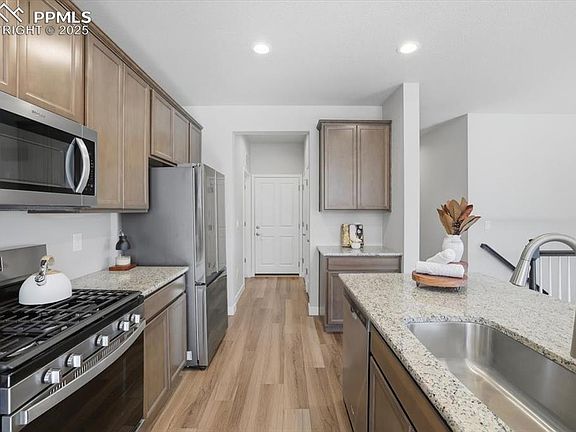 Nestled in the heart of the sought-after Powers Corridor, this meticulously maintained ranch-style home offers the perfect blend of everyday accessibility and peaceful retreat. Step inside to discover a thoughtfully designed main-level living space that embraces the ease of single-story living, ideal for families, professionals, and anyone who appreciates functional floor plans without compromise. The home’s true pride shines in its immaculate condition – professionally landscaped grounds create exceptional curb appeal while providing a rare level of privacy that’s increasingly hard to find in newer developments. This is your personal sanctuary, beautifully maintained and move-in ready. You’re perfectly positioned in one of Colorado Springs’ most convenient neighborhoods. The Powers Corridor delivers it all: • Minutes from First & Main Town Center – enjoy shopping, dining, entertainment, and a state-of-the-art movie theater • Easy access to Powers Boulevard – your direct route to Colorado Springs Airport (just 15 minutes), Peterson Space Force Base, and downtown Colorado Springs • Exceptional retail convenience – King Soopers, Costco, Target, restaurants, coffee shops, fitness centers, and everyday services are all nearby. • Parks and recreation – including Stetson Park, Sandstone Park, and Pring Ranch Park for outdoor enthusiasts The unfinished basement is a blank canvas with tremendous potential – already prepped with rough plumbing for an additional bathroom and ready to accommodate another bedroom, recreation room, home office, or whatever your lifestyle demands. This is expansion-ready space that adds incredible value and versatility to your investment. This home may share its builder’s DNA with others in the neighborhood, but its condition and privacy set it distinctly apart. Come see why the Powers Corridor continues to be one of Colorado Springs’ most active and desirable communities – then discover why is the address you’ve been searching for.