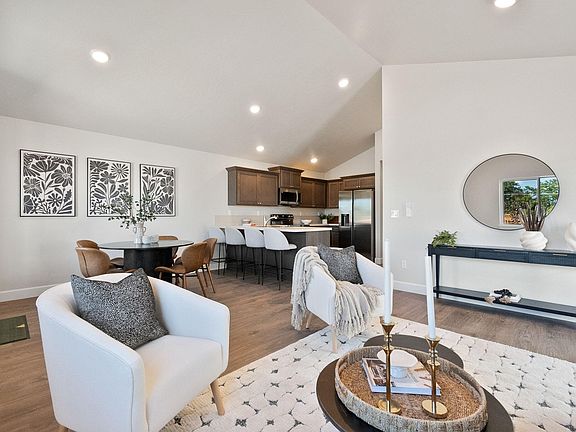 Welcome to the Astoria at Feather Ridge- a single-level home offering 2 bedrooms, 1 bathroom, and 880 square feet of well-designed space. The open-concept layout features a spacious great room, quartz kitchen countertops, stainless steel appliances, and luxury wood laminate flooring. A covered front porch adds charm, and the 2-car garage includes attached external storage for added functionality. With thoughtful finishes throughout and a location close to local parks, mountain views, and the future Redmond Recreation Center, the Astoria is the perfect fit for those looking for comfort, quality, and low-maintenance living.
